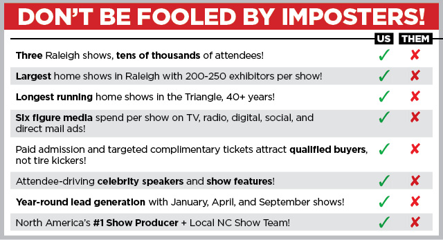 Show Official Hashtags: #RaleighHomeShow #FairgroundsIdealHomeShow
